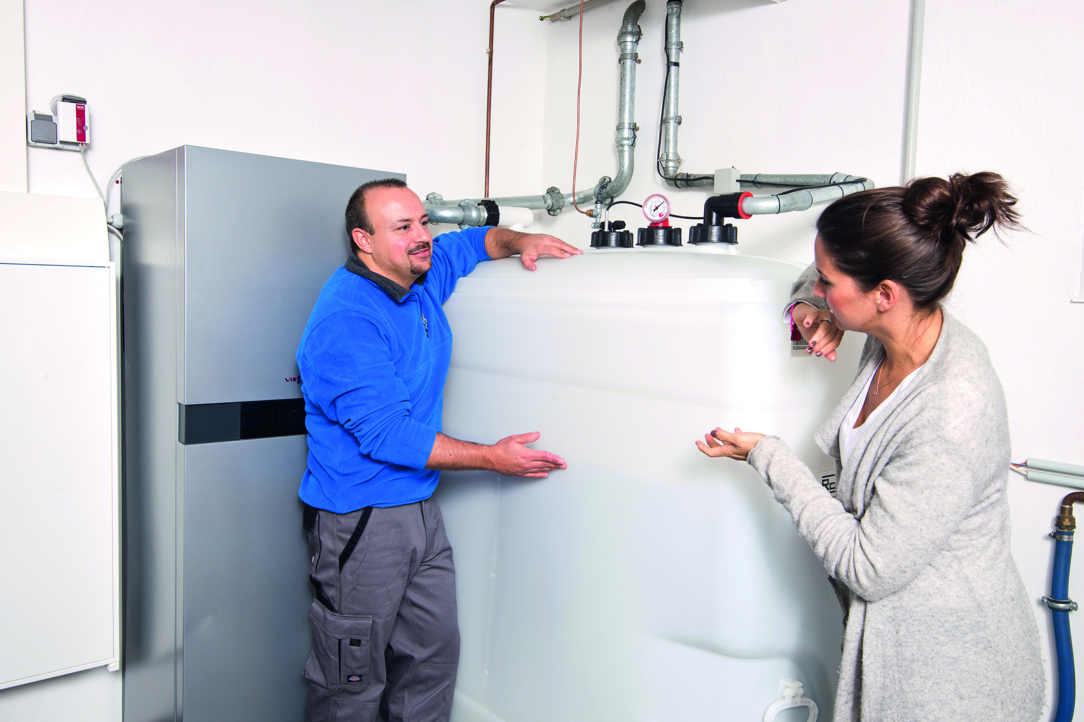 Bildunterschrift: Schlichter Tank, besonderer Inhalt: Im Innovationshaus befindet sich nicht nur herkömmliches Heizöl im Tank, sondern ein Gemisch mit einem neuen treibhausgasreduzierten Brennstoff.