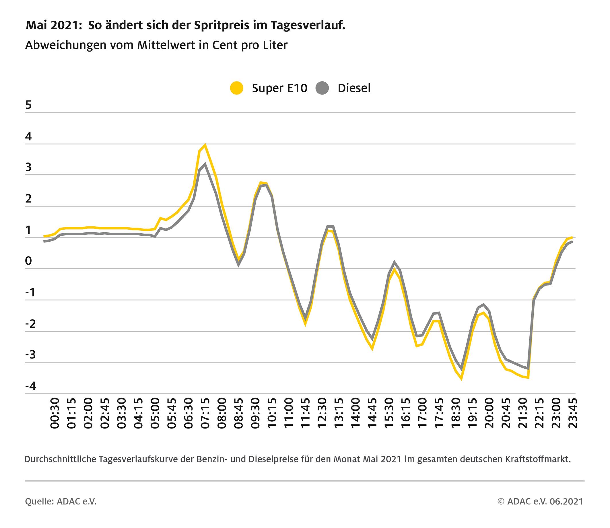 Kraftstoffpreise im Tagesverlauf, Mai 2021