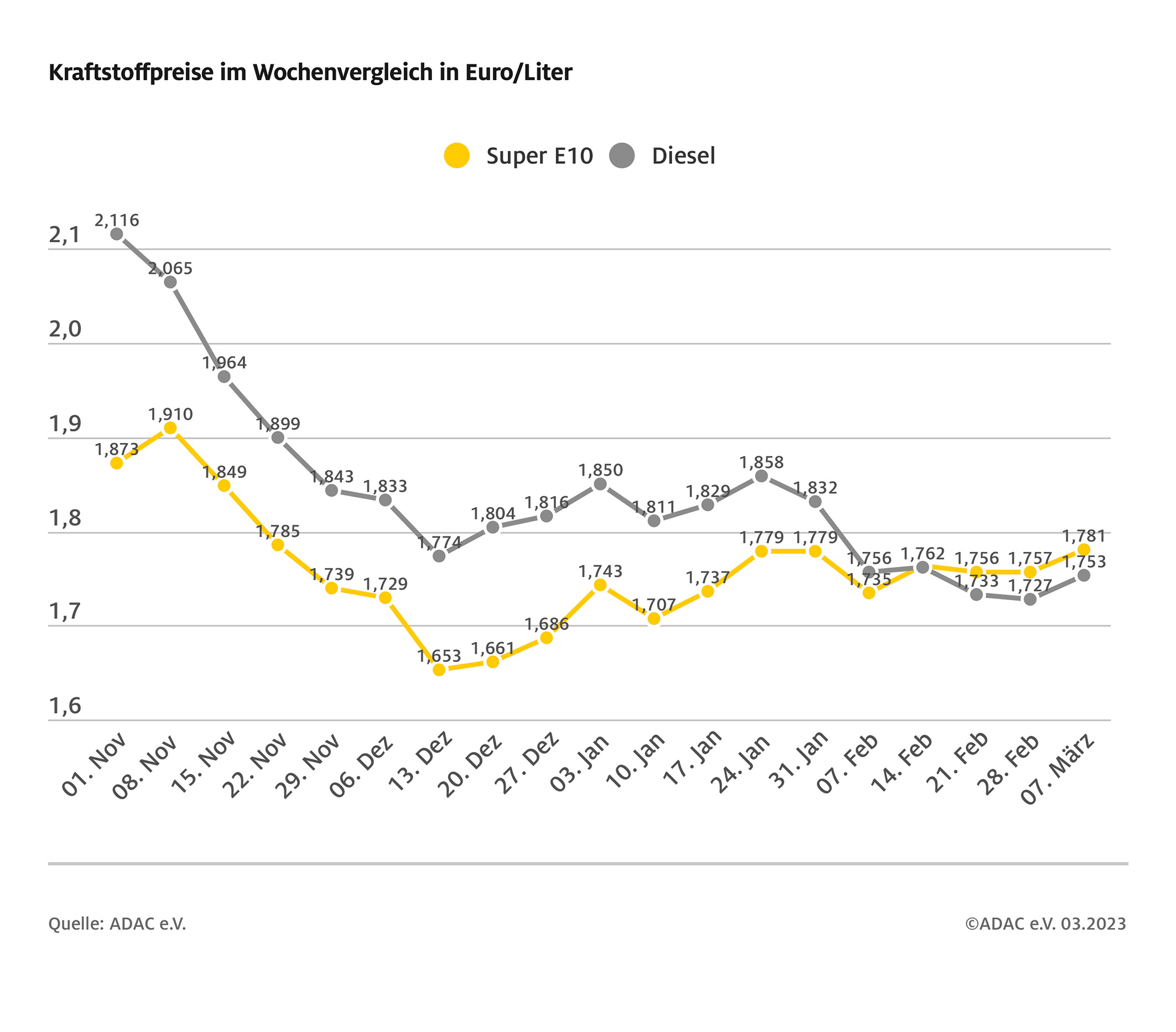 Kraftstoffpreise im Wochenvergleich