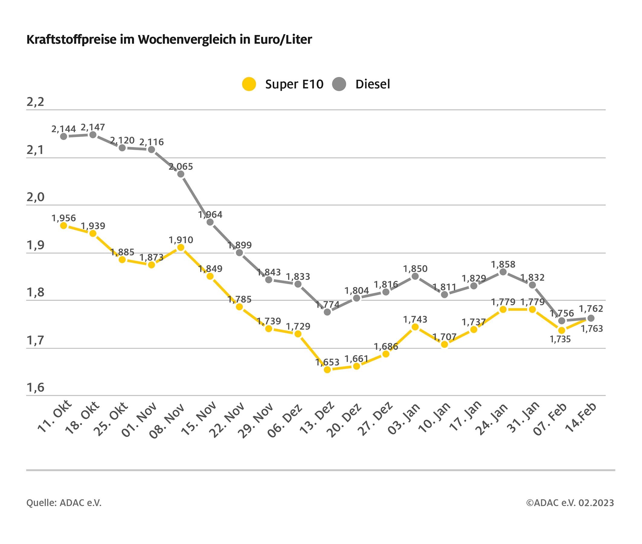 Kraftstoffpreise im Wochenvergleich