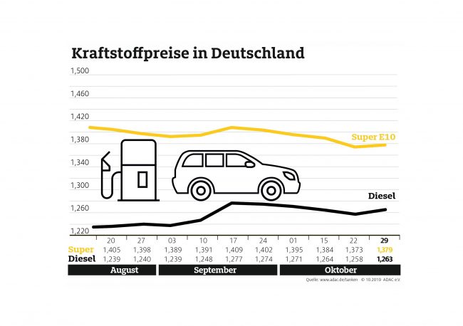 München (ots) Nachdem die Durchschnittspreise für Benzin und Diesel zuletzt fünf Wochen in Folge gesunken sind, wird Tanken in Deutschland wieder teurer. Laut aktueller Auswertung des ADAC kostet ein Liter Super E10 im Bundesmittel derzeit 1,379 Euro, das sind 0,6 Cent mehr als in der Vorwoche. Diesel verteuerte sich um 0,5 Cent auf durchschnittlich 1,263 Euro…