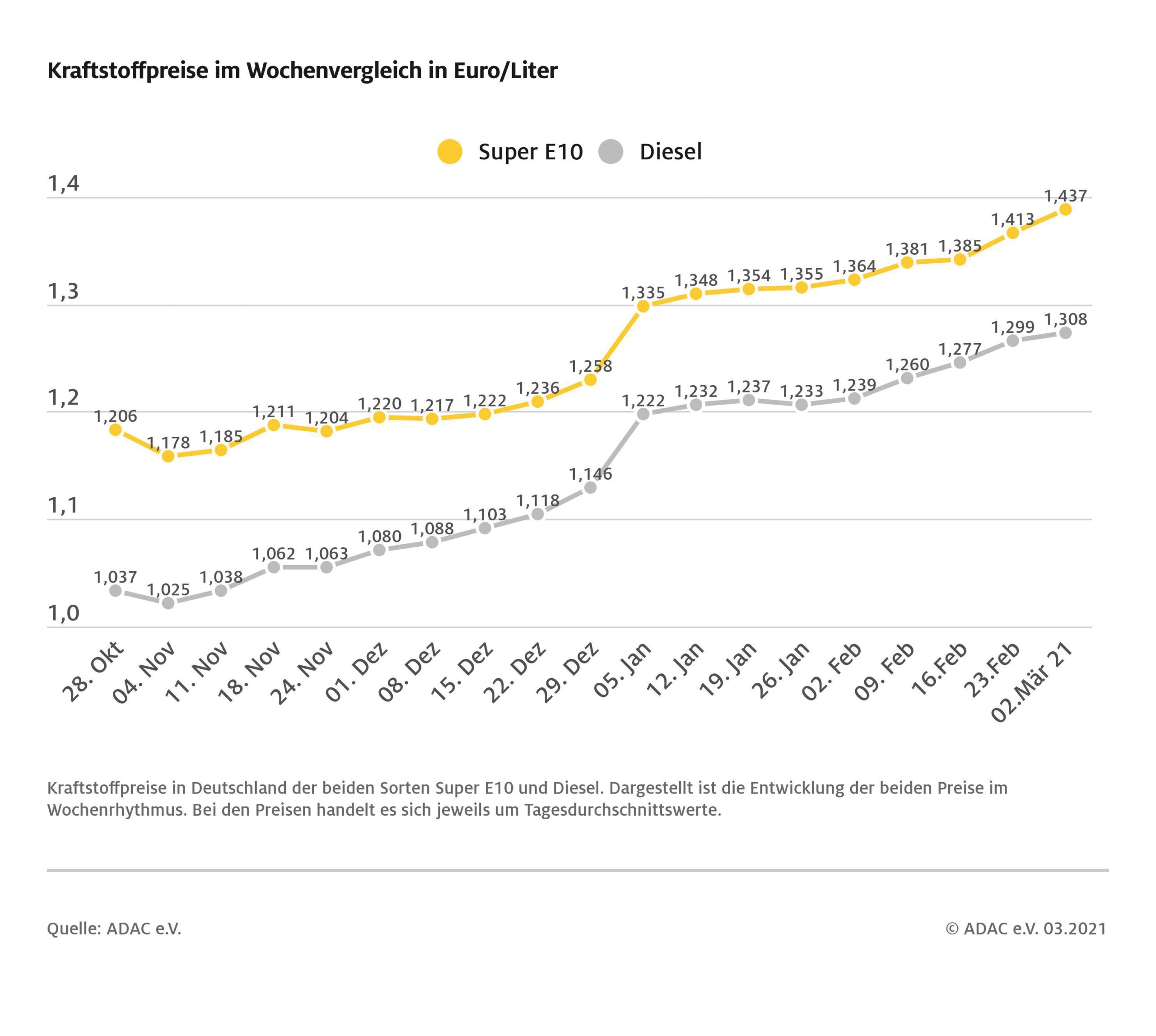 Kraftstoffpreise im Wochenvergleich Bildquelle: ADAC e.V.