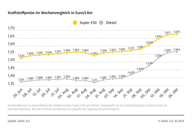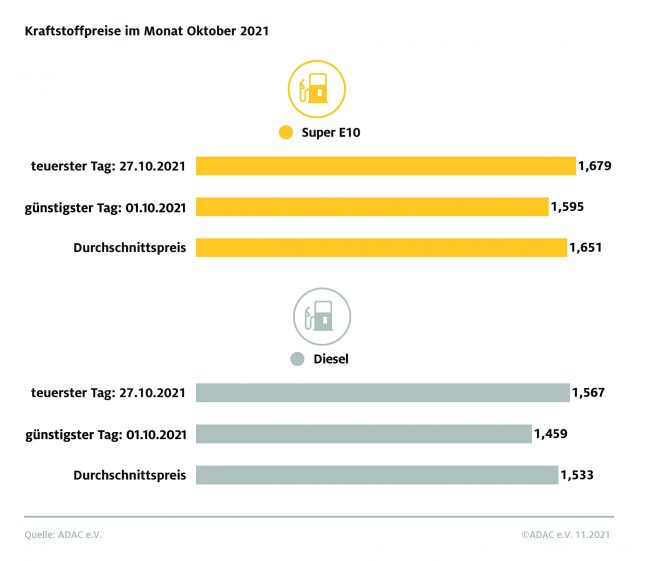 Diesel im Oktober so teuer wie noch nie – ADAC Auswertung: Anstieg gegenüber dem Vormonat um 12,2 Cent – Benzinpreis steigt auf neuen Jahreshöchststand
