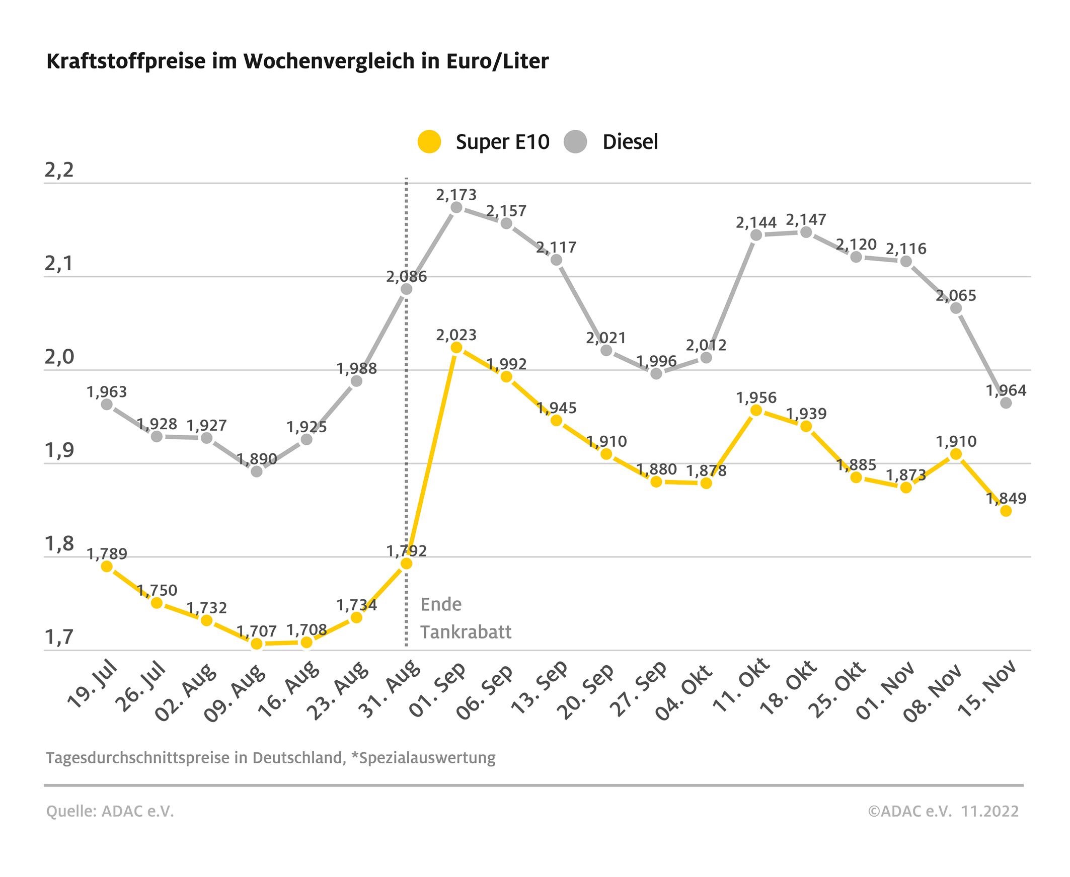 Kraftstoffpreise im Wochenvergleich Quelle: ADAC e.V.