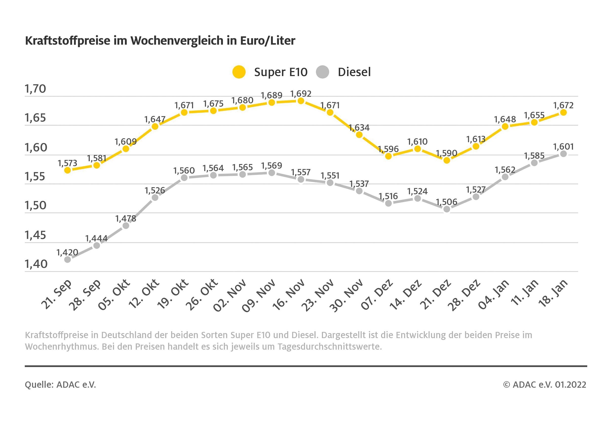 München (ots) – Nie zuvor mussten die Autofahrer in Deutschland mehr für Dieselkraftstoff bezahlen als zurzeit – dies zeigt die aktuelle ADAC Auswertung der Kraftstoffpreise. Danach kostet Diesel derzeit im bundesweiten Schnitt 1,601 Euro je Liter und damit 1,6 Cent mehr als in der Vorwoche. Mit der neuerlichen Verteuerung ist der Dieselpreis zum ersten Mal über die Marke von 1,60 Euro gesprungen.