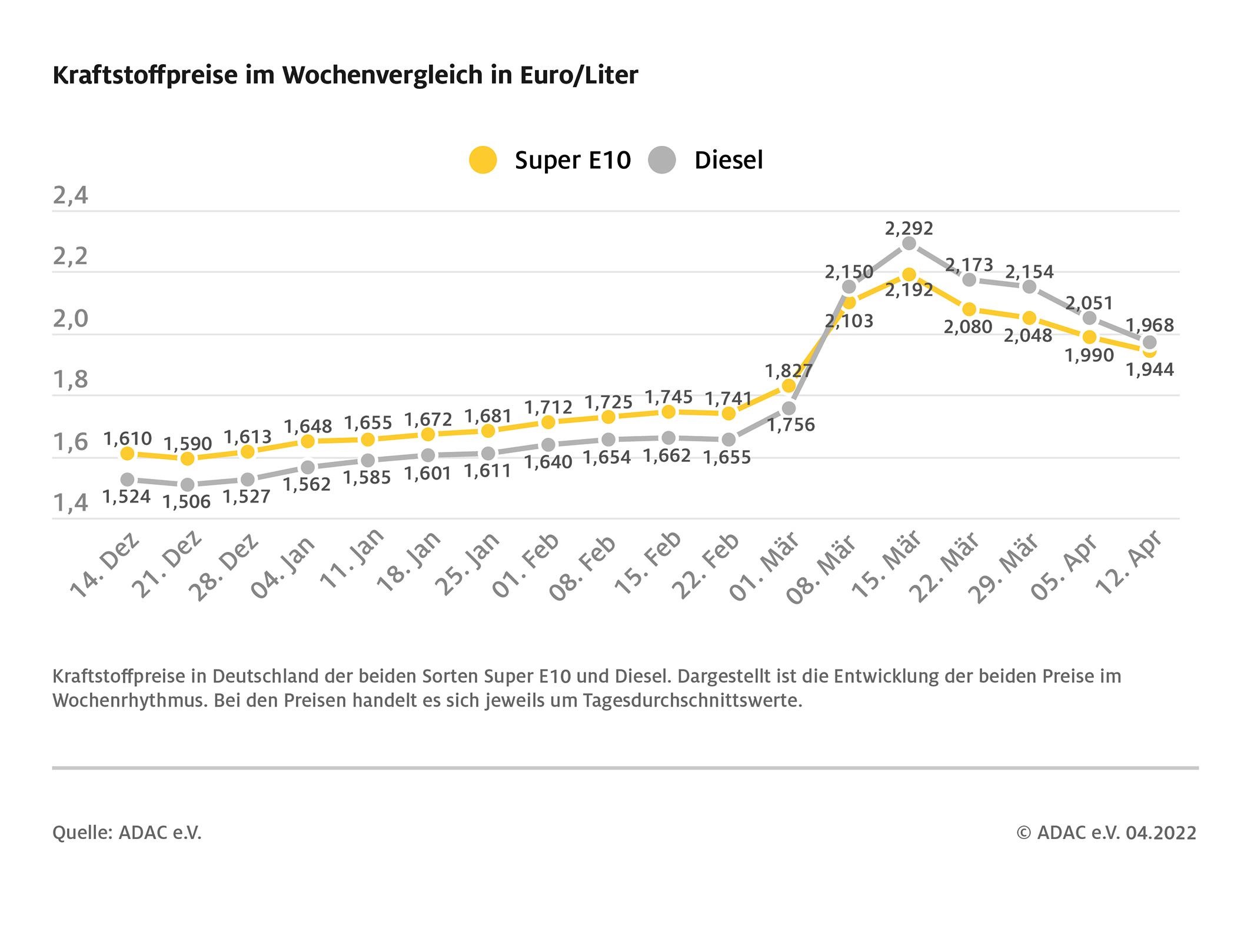Kraftstoffpreise im Wochenvergleich Quelle: ADAC e.V.