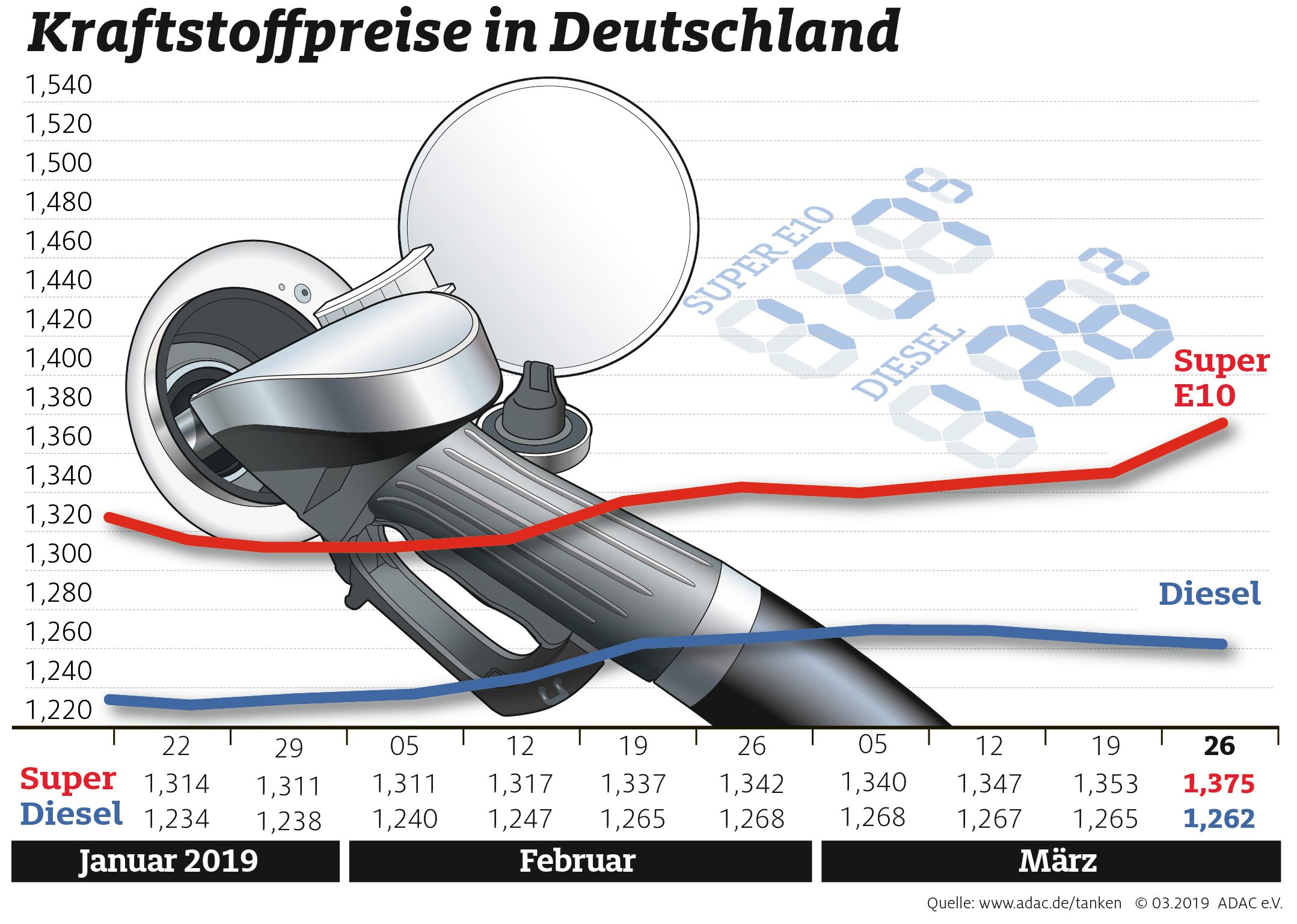 Der spürbare Anstieg des Benzinpreises ist durch die geringen Schwankungen am Rohöl- und Devisenmarkt nicht hinreichend erklärbar und eher der Wettbewerbssituation geschuldet. Auf der anderen Seite geht die Nachfrage nach Heizöl, die den Dieselpreis belastet, allmählich zurück.
