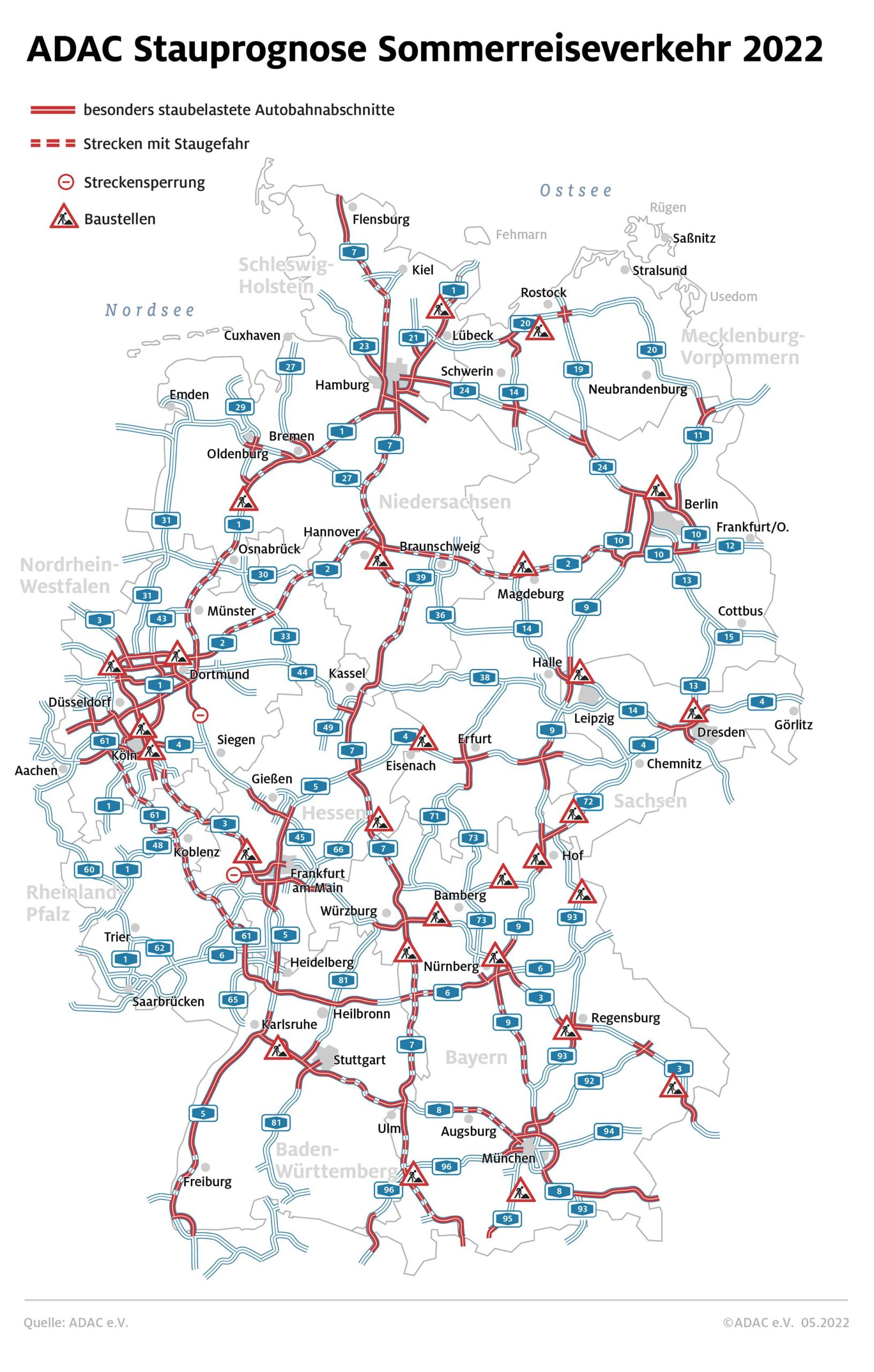 Staugefährdete Autobahnen im Sommerreiseverkehr 2022